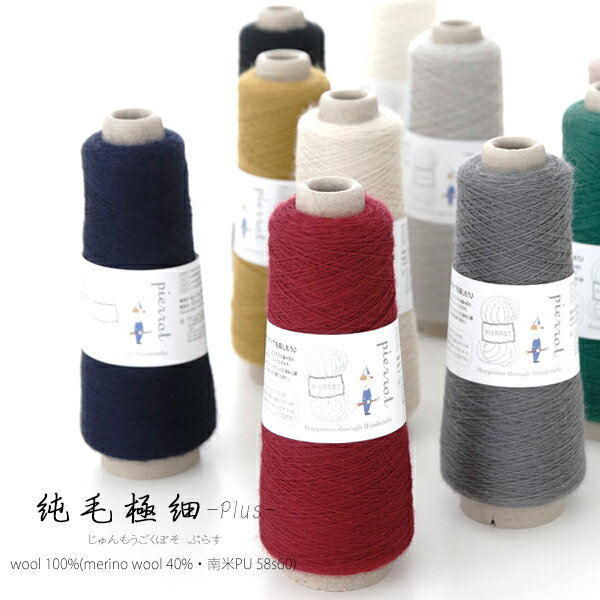【9N】純毛極細 -Plus-[毛100%(メリノウール40% 南米プンタウール60%) 極細 80gコーン巻き (約651m) 全13色]毛糸ピエロ♪編み物 手編み 手芸 毛糸
