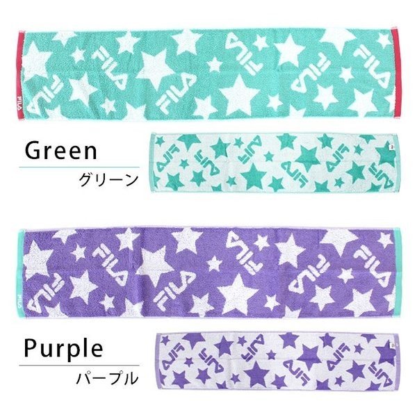 商品詳細 サイズ 約22cm×90cm 組成 綿100% 色 グリーン/パープル SLIM LONG TOWEL 人気スポーツブランド「FILA」のスリムロングタオルです。