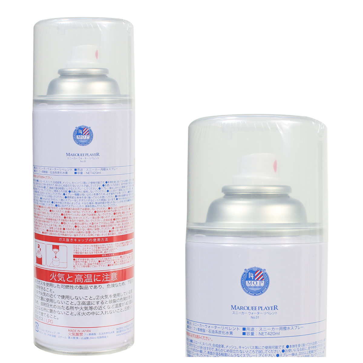 ブランド名 / 商品名 MARQUEE PLAYER マーキープレイヤー / SNEAKER WATER REPELLENT KEEPER No.01 3本セット MP005 生産国 JAPAN 内容量 1本あたり420ml 使用方法 1.シューズの塗布面の汚れをとってから、屋外で20cm以上離してムラなく表面が湿る程度にスプレーしてください。